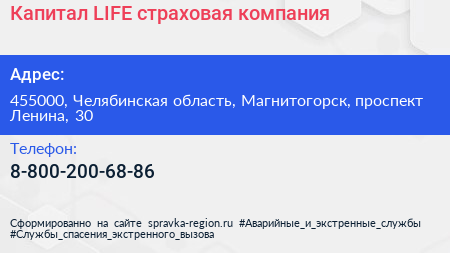 Капитал LIFE, страховая компания по адресу 455000, Челябинская область, Магнитогорск, проспект Ленина, 30 в дальнейшем Организация, размещена в следующих категориях: