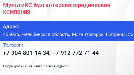 МультиКС, бухгалтерско-юридическая компания по адресу 455026, Челябинская область, Магнитогорск, Гагарина, 33 в дальнейшем Организация, размещена в следующих категориях: