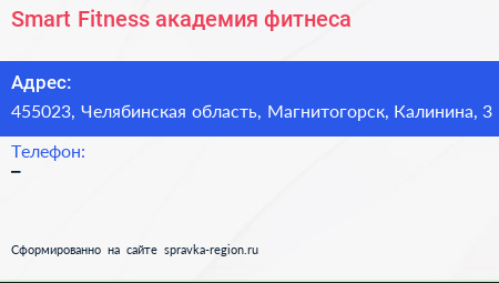 Smart Fitness, академия фитнеса по адресу 455023, Челябинская область, Магнитогорск, Калинина, 3 в дальнейшем Организация, размещена в следующих категориях: