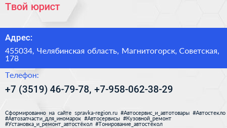 Твой юрист по адресу 455034, Челябинская область, Магнитогорск, Советская, 178 в дальнейшем Организация, размещена в следующих категориях: