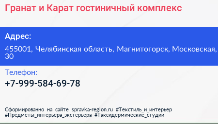 Гранат и Карат, гостиничный комплекс по адресу 455001, Челябинская область, Магнитогорск, Московская, 30 в дальнейшем Организация, размещена в следующих категориях: