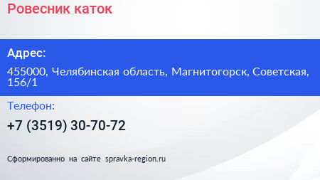 Ровесник, каток по адресу 455000, Челябинская область, Магнитогорск, Советская, 156/1 в дальнейшем Организация, размещена в следующих категориях: