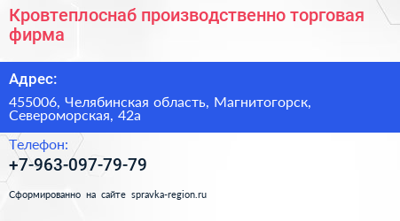 Кровтеплоснаб, производственно-торговая фирма по адресу 455006, Челябинская область, Магнитогорск, Североморская, 42а в дальнейшем Организация, размещена в следующих категориях: