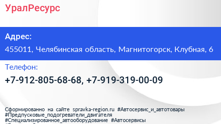 УралРесурс по адресу 455011, Челябинская область, Магнитогорск, Клубная, 6 в дальнейшем Организация, размещена в следующих категориях: