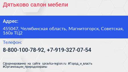 Дятьково, салон мебели по адресу 455047, Челябинская область, Магнитогорск, Советская, 160а ТЦ2 в дальнейшем Организация, размещена в следующих категориях: