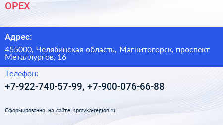 ОРЕХ по адресу 455000, Челябинская область, Магнитогорск, проспект Металлургов, 16 в дальнейшем Организация, размещена в следующих категориях: