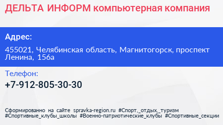 ДЕЛЬТА ИНФОРМ, компьютерная компания по адресу 455021, Челябинская область, Магнитогорск, проспект Ленина, 156а в дальнейшем Организация, размещена в следующих категориях: