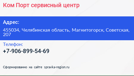 Ком-Порт, сервисный центр по адресу 455034, Челябинская область, Магнитогорск, Советская, 207 в дальнейшем Организация, размещена в следующих категориях: