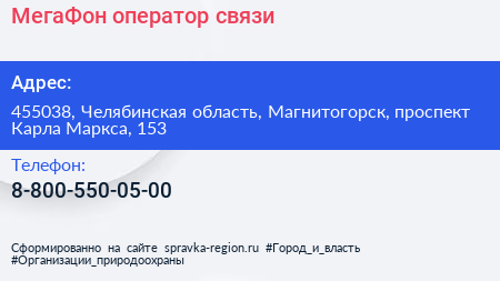 МегаФон, оператор связи по адресу 455038, Челябинская область, Магнитогорск, проспект Карла Маркса, 153 в дальнейшем Организация, размещена в следующих категориях: