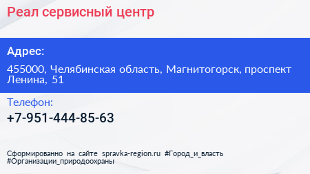 Реал, сервисный центр по адресу 455000, Челябинская область, Магнитогорск, проспект Ленина, 51 в дальнейшем Организация, размещена в следующих категориях: