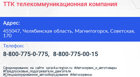 ТТК, телекоммуникационная компания по адресу 455047, Челябинская область, Магнитогорск, Советская, 170 в дальнейшем Организация, размещена в следующих категориях: