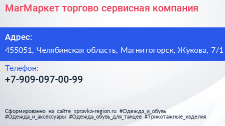 МагМаркет, торгово-сервисная компания по адресу 455051, Челябинская область, Магнитогорск, Жукова, 7/1 в дальнейшем Организация, размещена в следующих категориях:
