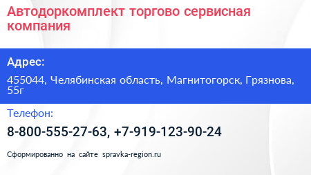Автодоркомплект, торгово-сервисная компания по адресу 455044, Челябинская область, Магнитогорск, Грязнова, 55г в дальнейшем Организация, размещена в следующих категориях: