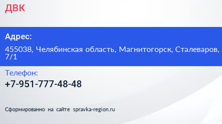 ДВК по адресу 455038, Челябинская область, Магнитогорск, Сталеваров, 7/1 в дальнейшем Организация, размещена в следующих категориях: