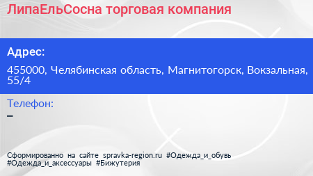 ЛипаЕльСосна, торговая компания по адресу 455000, Челябинская область, Магнитогорск, Вокзальная, 55/4 в дальнейшем Организация, размещена в следующих категориях:
