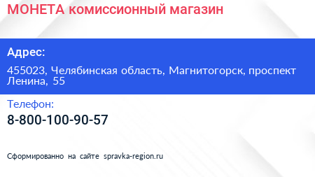 МОНЕТА, комиссионный магазин по адресу 455023, Челябинская область, Магнитогорск, проспект Ленина, 55 в дальнейшем Организация, размещена в следующих категориях: