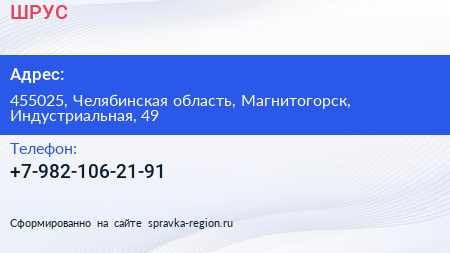 ШРУС по адресу 455025, Челябинская область, Магнитогорск, Индустриальная, 49 в дальнейшем Организация, размещена в следующих категориях: