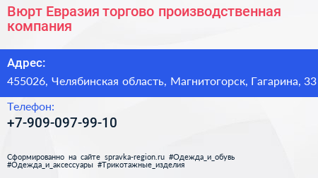 Вюрт-Евразия, торгово-производственная компания по адресу 455026, Челябинская область, Магнитогорск, Гагарина, 33 в дальнейшем Организация, размещена в следующих категориях: