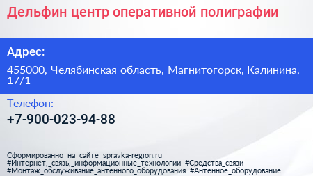 Дельфин, центр оперативной полиграфии по адресу 455000, Челябинская область, Магнитогорск, Калинина, 17/1 в дальнейшем Организация, размещена в следующих категориях: