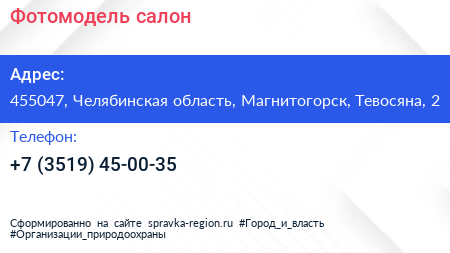 Фотомодель, салон по адресу 455047, Челябинская область, Магнитогорск, Тевосяна, 2 в дальнейшем Организация, размещена в следующих категориях: