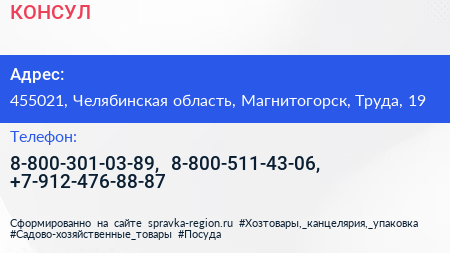 КОНСУЛ по адресу 455021, Челябинская область, Магнитогорск, Труда, 19 в дальнейшем Организация, размещена в следующих категориях:
