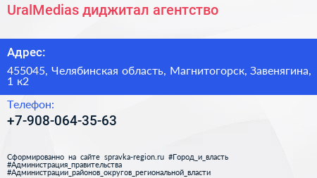 UralMedias, диджитал-агентство по адресу 455045, Челябинская область, Магнитогорск, Завенягина, 1 к2 в дальнейшем Организация, размещена в следующих категориях: