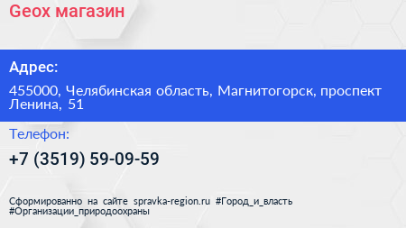 Geox, магазин по адресу 455000, Челябинская область, Магнитогорск, проспект Ленина, 51 в дальнейшем Организация, размещена в следующих категориях: