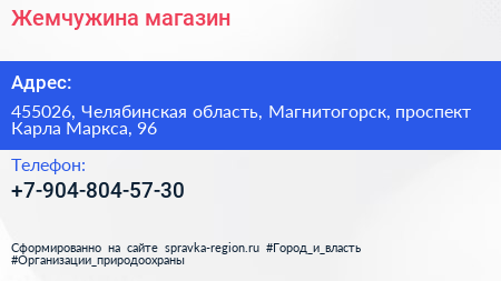 Жемчужина, магазин по адресу 455026, Челябинская область, Магнитогорск, проспект Карла Маркса, 96 в дальнейшем Организация, размещена в следующих категориях: