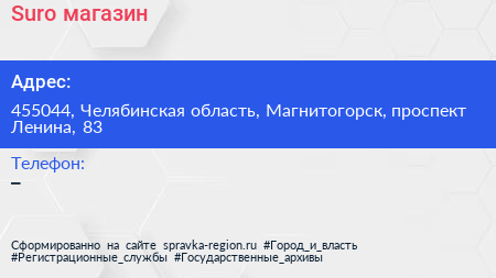 Suro, магазин по адресу 455044, Челябинская область, Магнитогорск, проспект Ленина, 83 в дальнейшем Организация, размещена в следующих категориях: