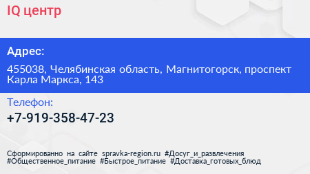 IQ, центр по адресу 455038, Челябинская область, Магнитогорск, проспект Карла Маркса, 143 в дальнейшем Организация, размещена в следующих категориях: