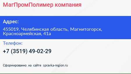МагПромПолимер, компания по адресу 455019, Челябинская область, Магнитогорск, Красноармейская, 41а в дальнейшем Организация, размещена в следующих категориях: