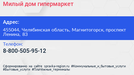 Милый дом, гипермаркет по адресу 455044, Челябинская область, Магнитогорск, проспект Ленина, 83 в дальнейшем Организация, размещена в следующих категориях: