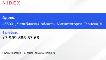 N I D E X по адресу 455001, Челябинская область, Магнитогорск, Герцена, 6 в дальнейшем Организация, размещена в следующих категориях: