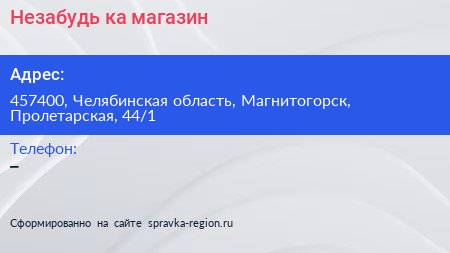 Незабудь-ка, магазин по адресу 457400, Челябинская область, Магнитогорск, Пролетарская, 44/1 в дальнейшем Организация, размещена в следующих категориях: