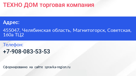 ТЕХНО-ДОМ, торговая компания по адресу 455047, Челябинская область, Магнитогорск, Советская, 160а ТЦ2 в дальнейшем Организация, размещена в следующих категориях: