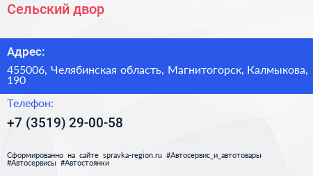 Сельский двор по адресу 455006, Челябинская область, Магнитогорск, Калмыкова, 190 в дальнейшем Организация, размещена в следующих категориях: