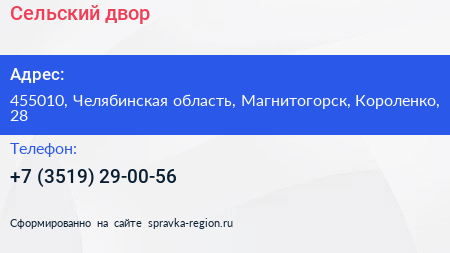 Сельский двор по адресу 455010, Челябинская область, Магнитогорск, Короленко, 28 в дальнейшем Организация, размещена в следующих категориях: