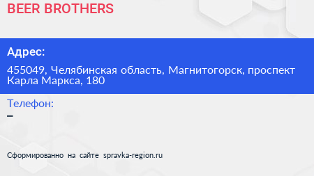 BEER BROTHERS по адресу 455049, Челябинская область, Магнитогорск, проспект Карла Маркса, 180 в дальнейшем Организация, размещена в следующих категориях: