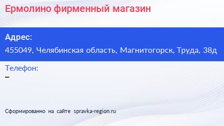 Ермолино, фирменный магазин по адресу 455049, Челябинская область, Магнитогорск, Труда, 38д в дальнейшем Организация, размещена в следующих категориях:
