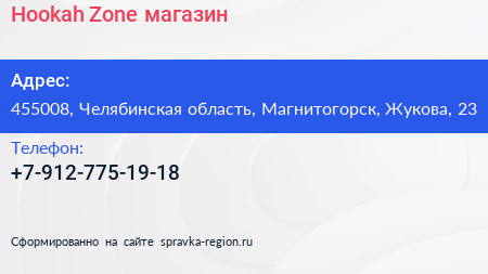 Hookah Zone, магазин по адресу 455008, Челябинская область, Магнитогорск, Жукова, 23 в дальнейшем Организация, размещена в следующих категориях: