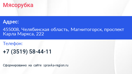 Мясорубка по адресу 455008, Челябинская область, Магнитогорск, проспект Карла Маркса, 222 в дальнейшем Организация, размещена в следующих категориях: