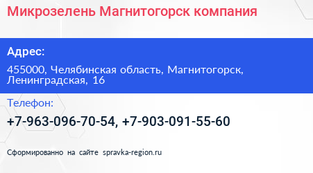 Микрозелень Магнитогорск, компания по адресу 455000, Челябинская область, Магнитогорск, Ленинградская, 16 в дальнейшем Организация, размещена в следующих категориях:
