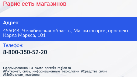 Равис, сеть магазинов по адресу 455044, Челябинская область, Магнитогорск, проспект Карла Маркса, 101 в дальнейшем Организация, размещена в следующих категориях: