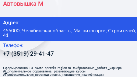 Автовышка-М по адресу 455000, Челябинская область, Магнитогорск, Строителей, 41 в дальнейшем Организация, размещена в следующих категориях: