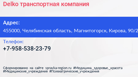 Delko, транспортная компания по адресу 455000, Челябинская область, Магнитогорск, Кирова, 90/2 в дальнейшем Организация, размещена в следующих категориях: