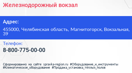 Адрес: Челябинская область, Магнитогорск, Вокзальная, 39