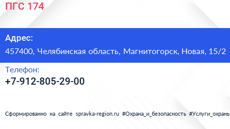 ПГС 174 по адресу 457400, Челябинская область, Магнитогорск, Новая, 15/2 в дальнейшем Организация, размещена в следующих категориях: