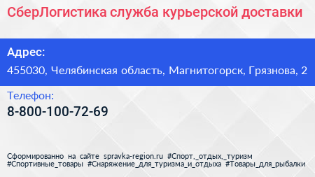 СберЛогистика, служба курьерской доставки по адресу 455030, Челябинская область, Магнитогорск, Грязнова, 2 в дальнейшем Организация, размещена в следующих категориях: