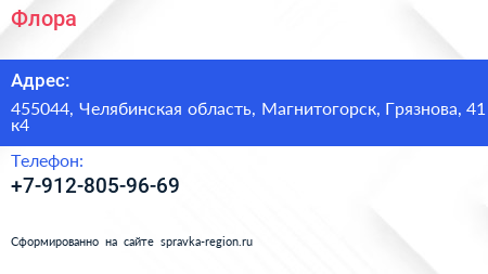Флора по адресу 455044, Челябинская область, Магнитогорск, Грязнова, 41 к4 в дальнейшем Организация, размещена в следующих категориях: