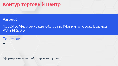 Контур, торговый центр по адресу 455045, Челябинская область, Магнитогорск, Бориса Ручьёва, 7Б в дальнейшем Организация, размещена в следующих категориях: